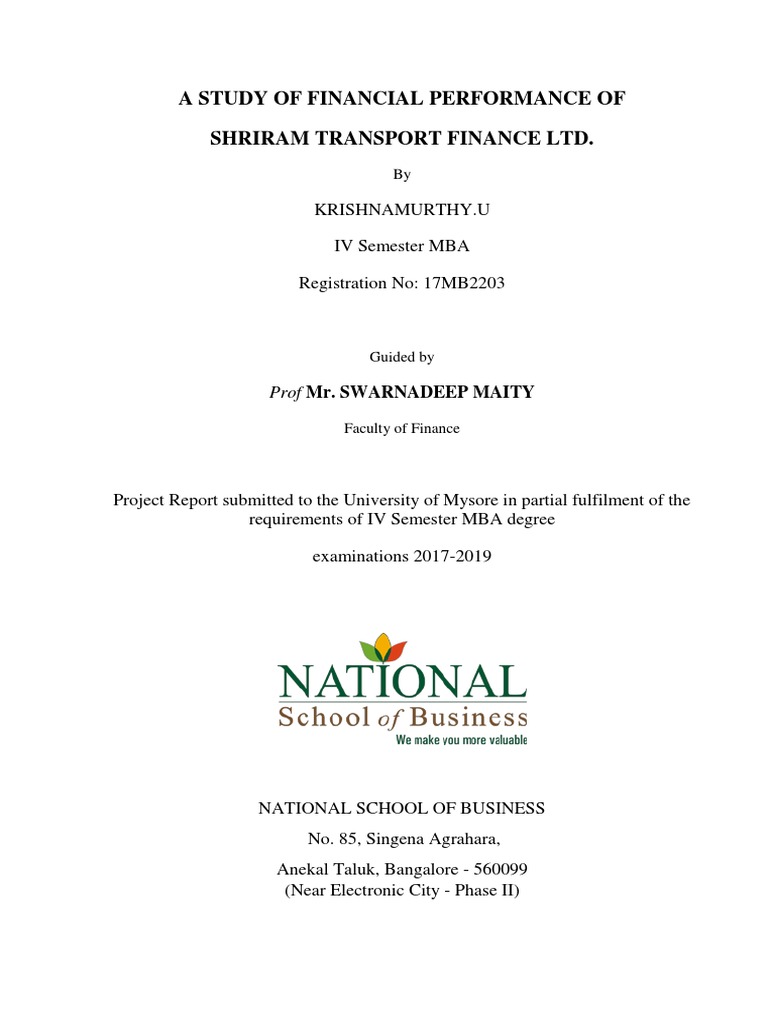 STUDY OF FINANCIAL PERFORMANCE OF SHRIRAM TRANSPORT