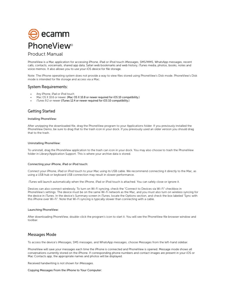 PhoneView® Copyright 2007-2018 Ecamm Network, LLC. Mac, iPhone, iPad, iPhoto, iPod touch, iTunes, iOS, macOS and Mac