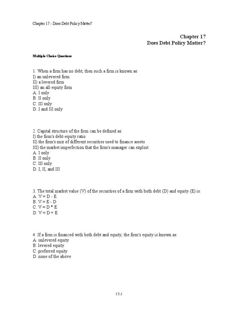 effect on the overall value of the firm. It also applies to the mix of debt securities issued by