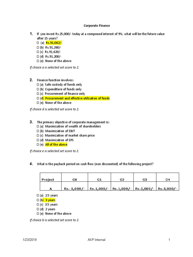 1. If you invest Rs.25,000/- today at a compound interest of 9%, what will be the future value