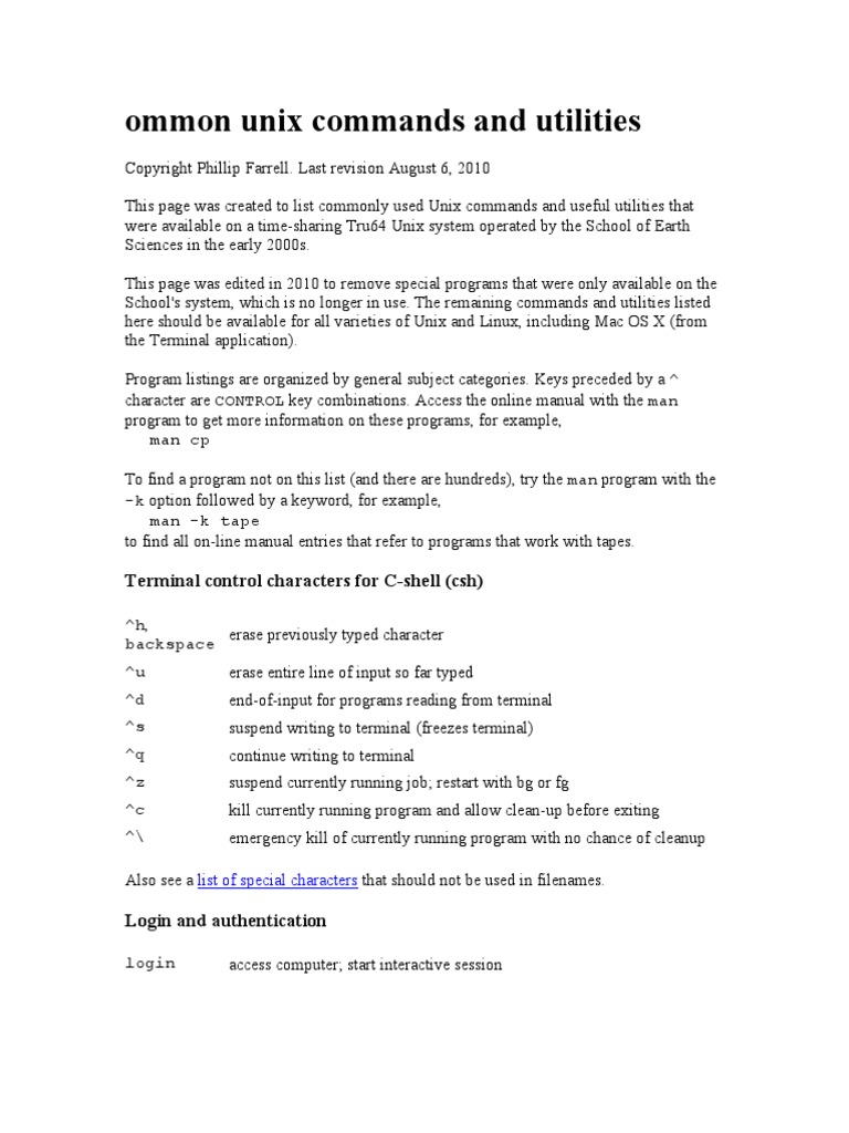 ommon unix commands and utilities