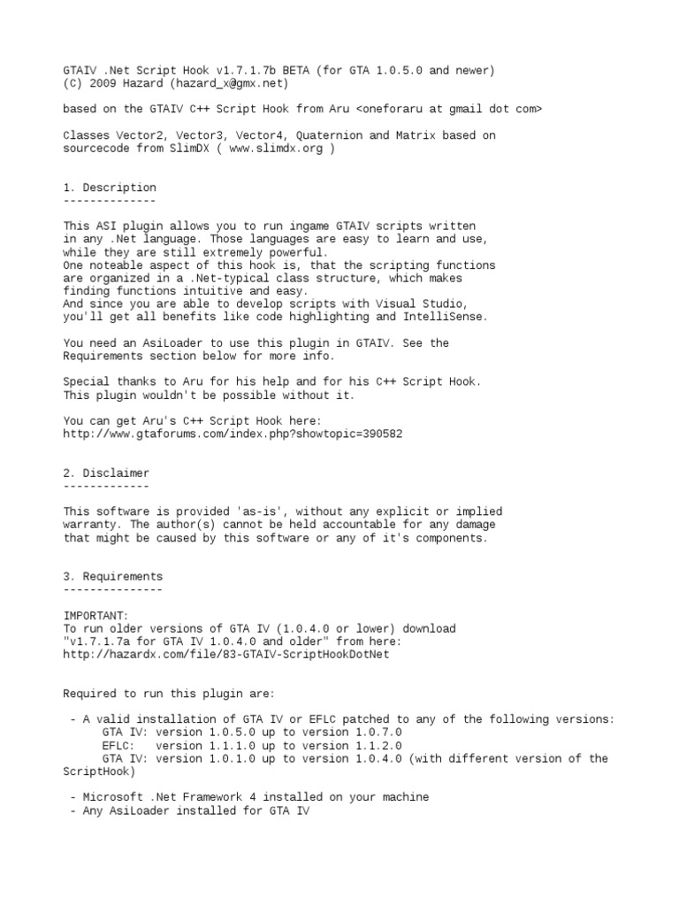 GTAIV .Net Script Hook v1.7.1.7b BETA (for GTA 1.0.5.