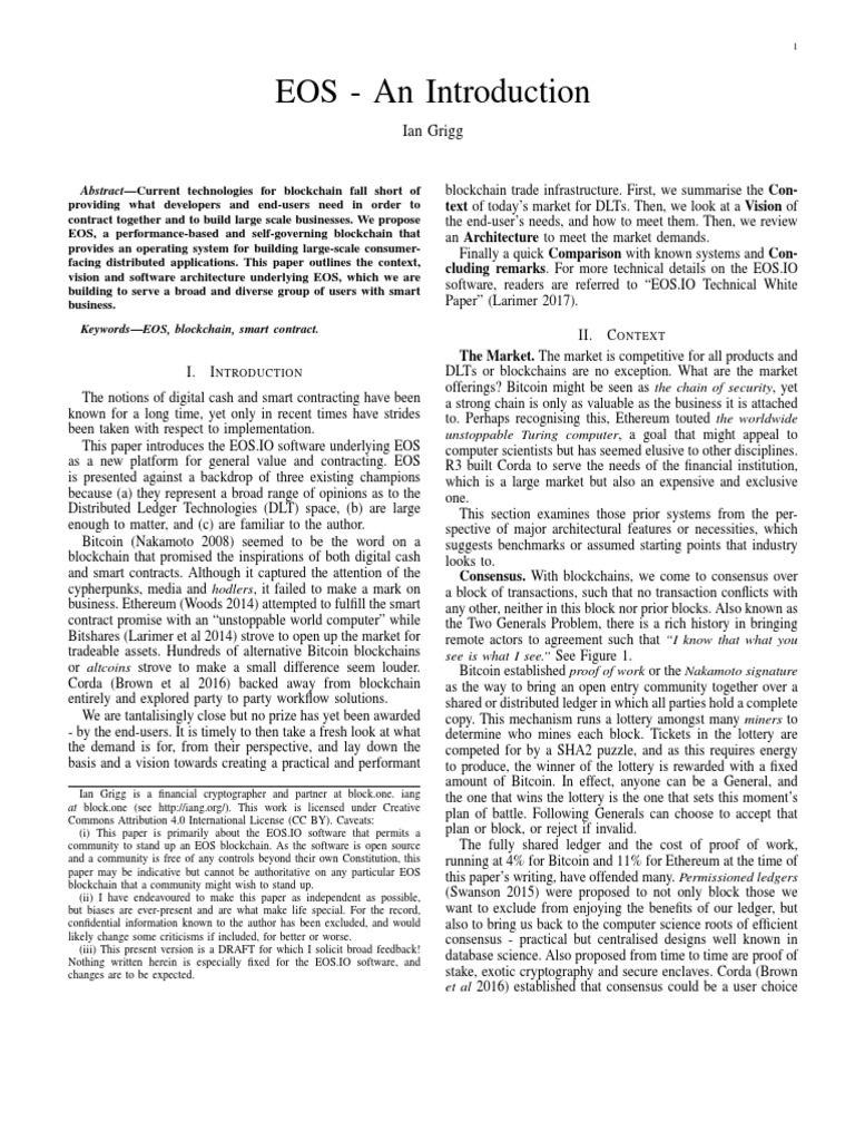 paper may be indicative but cannot be authoritative on any particular EOS this paper’s writing, have offended many. Permissioned ledgers