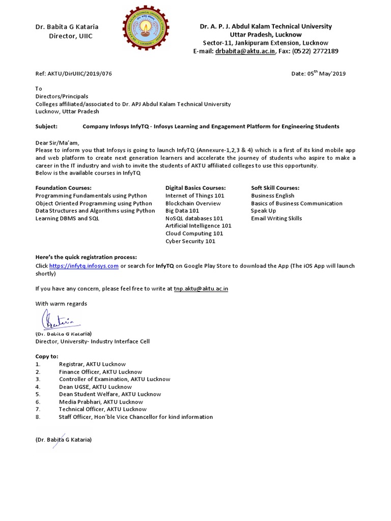 Ref: AKTU/DirUIIC/2019/076 Date: 05 May’2019