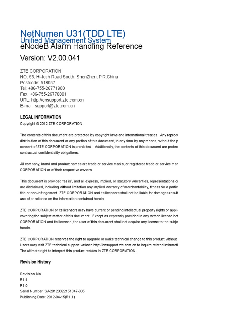 Users may visit ZTE technical support website http://ensupport.zte.com.cn to inquire related information.