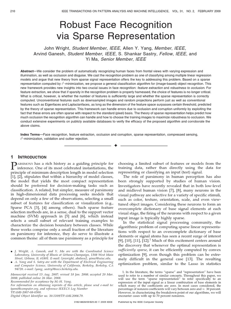 cluded, and Expression Variant Faces from a Single Sample per Signals via Convex Programming,” http://www.acm.caltech.