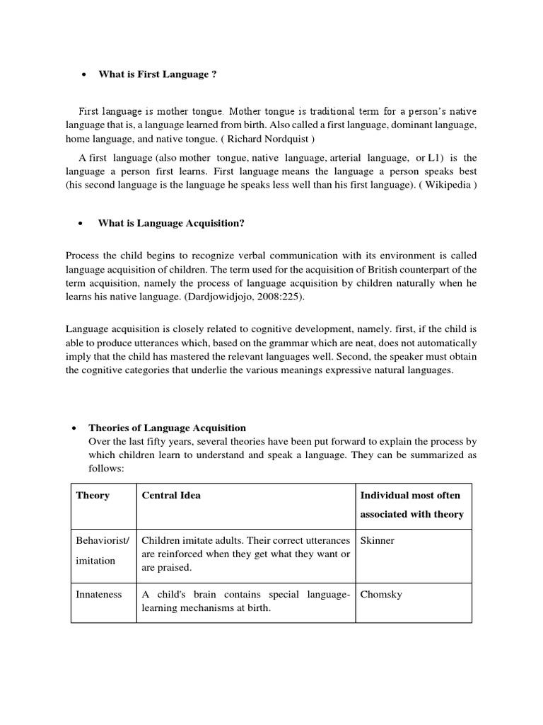 of human to acquire their mother tongue from their early age. There are four theories to describe