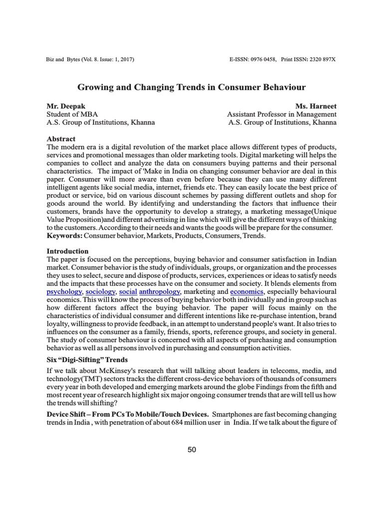 Growing and Changing Trends in Consumer Behaviour