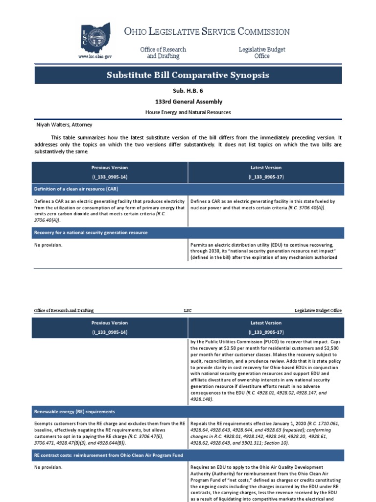 P a g e | 11 Sub. H.B. 6 Sub. Bill Comparative Synopsis