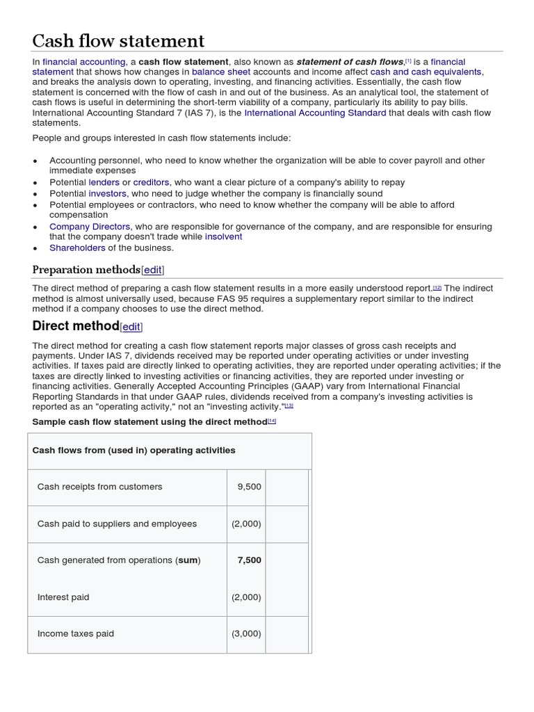 The direct method of preparing a cash flow statement results in a more easily understood report.[12] The indirect