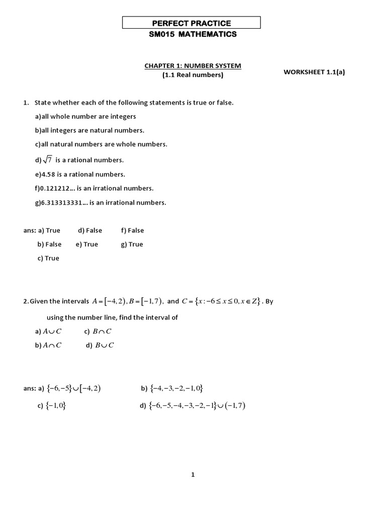 CHAPTER 1: NUMBER SYSTEM WORKSHEET 1.2