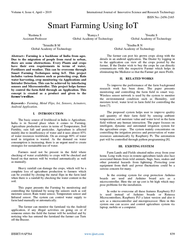 India is in Second place when it comes to Farming, field without any human interaction. The paper focuses on