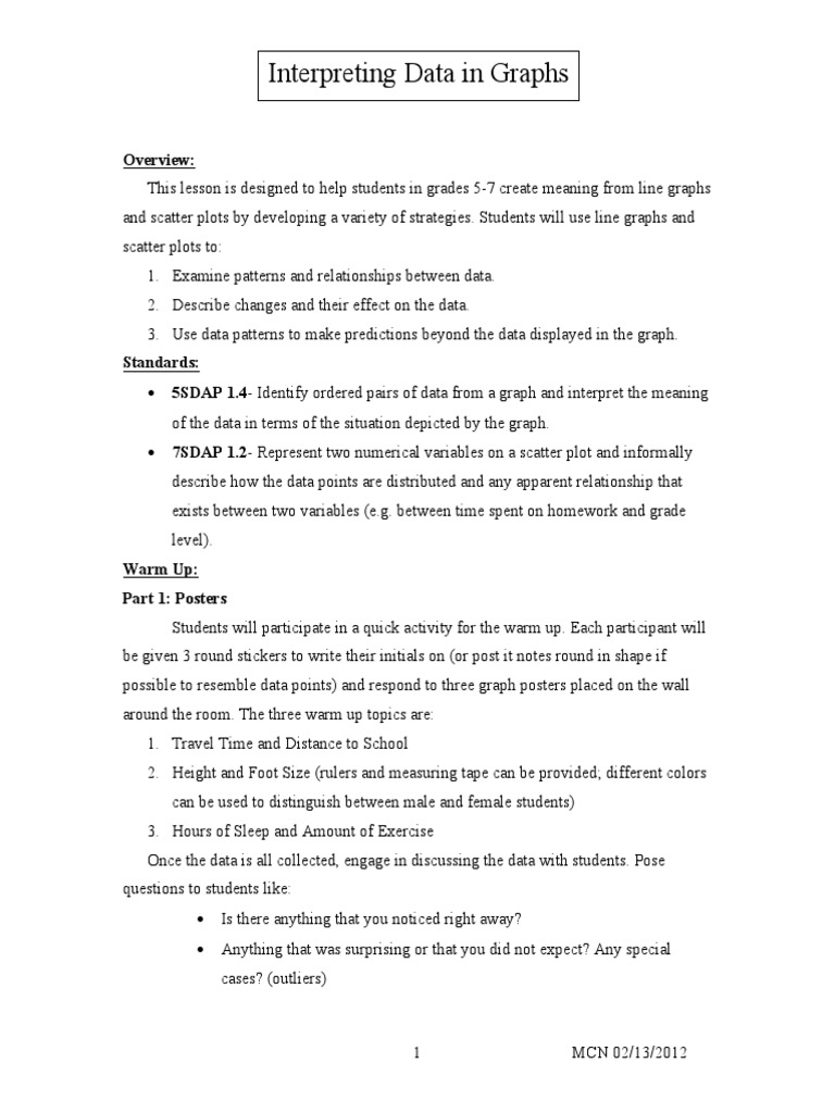and scatter plots by developing a variety of strategies. Students will use line graphs and