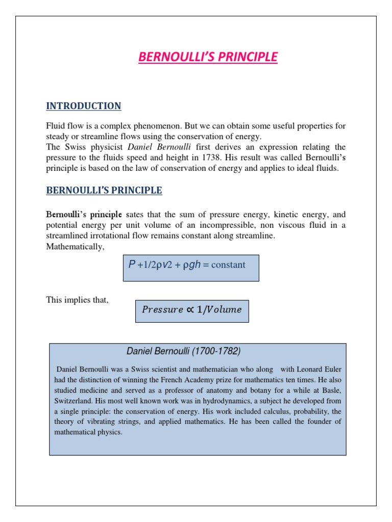 pressure to the fluids speed and height in 1738. His result was called Bernoulli’s