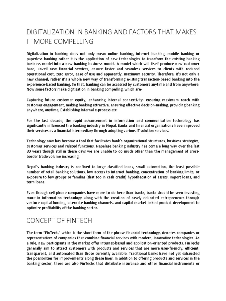 Now some factors make digitization in banking compelling, which are-