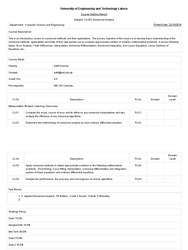 Department: Computer Science and Engineering Printed Date: 22/10/2018
