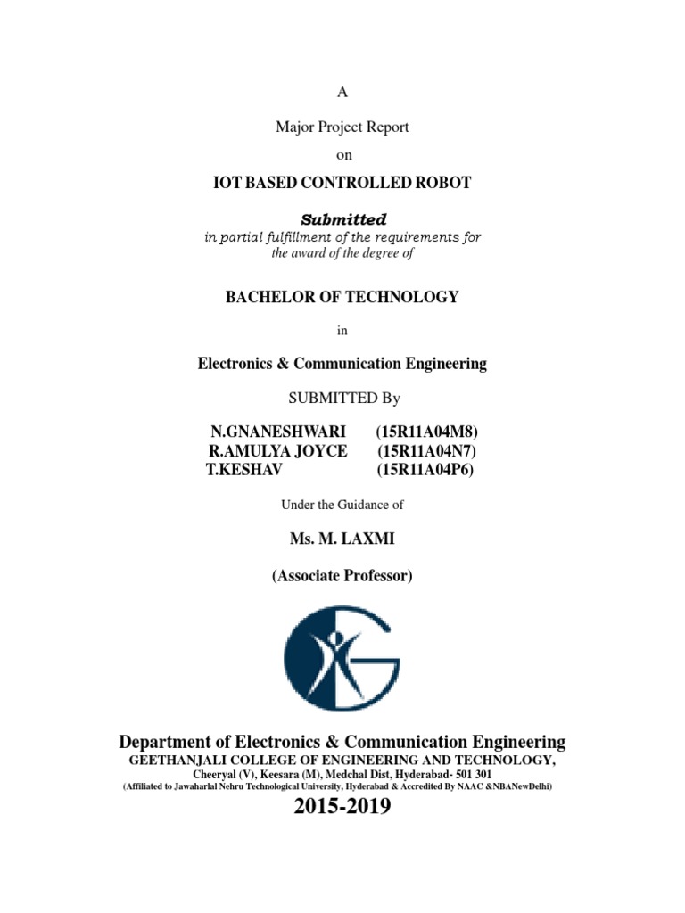This is to certify that the project report titled "IOT BASED CONTROLLED ROBOT"