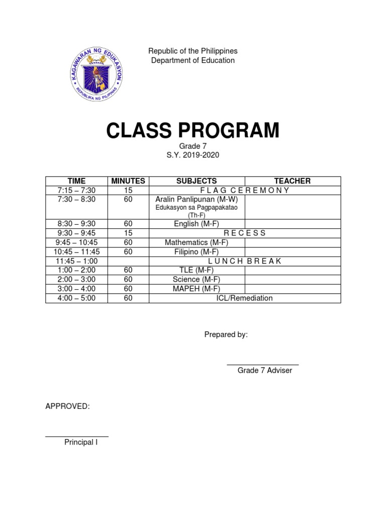 3:00 – 4:00 60 MAPEH (M-F)