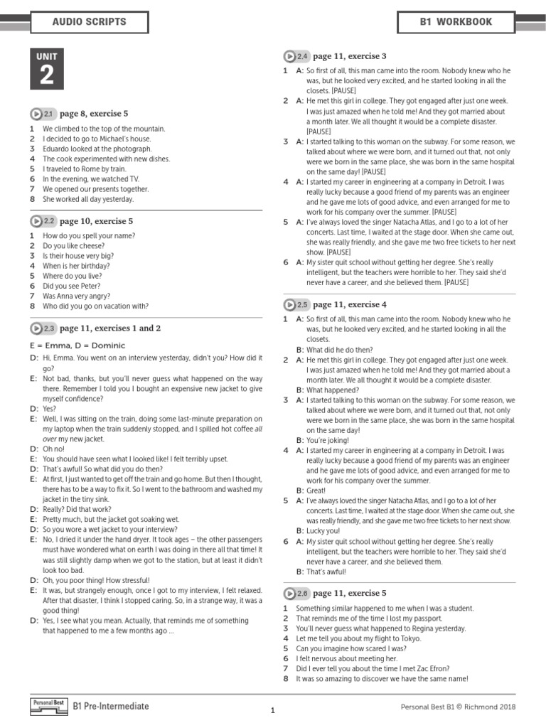 B1 Pre-Intermediate 2 Personal Best B1 © Richmond 2018