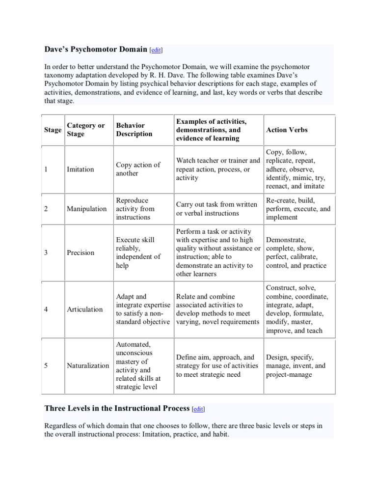 taxonomy adaptation developed by R. H. Dave. The following table examines Dave¶s