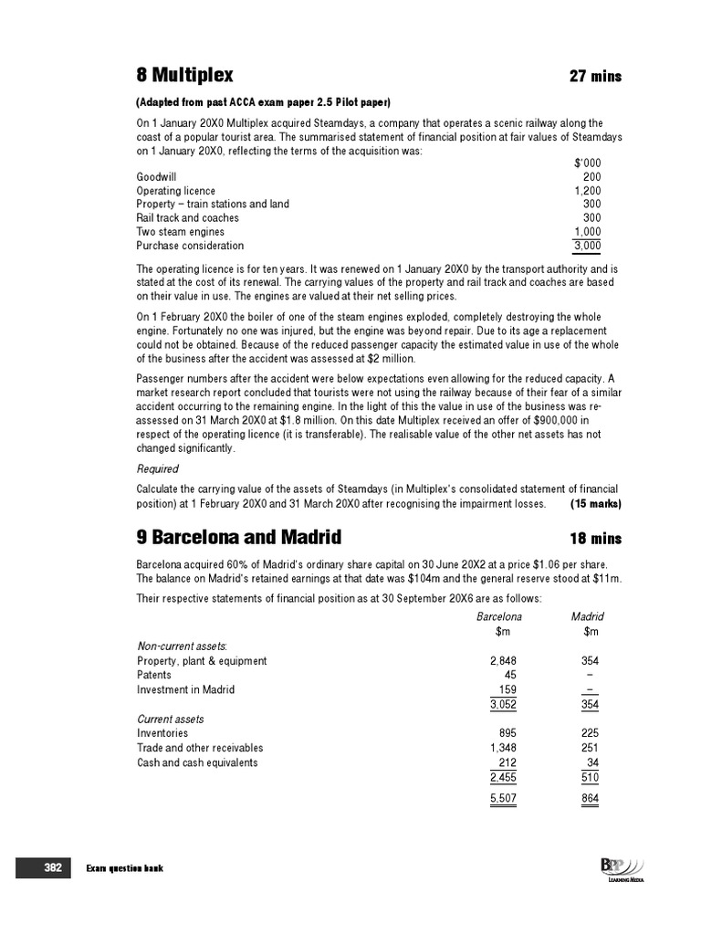 assessed on 31 March 20X0 at $1.8 million. On this date Multiplex received an offer of $900,000 in