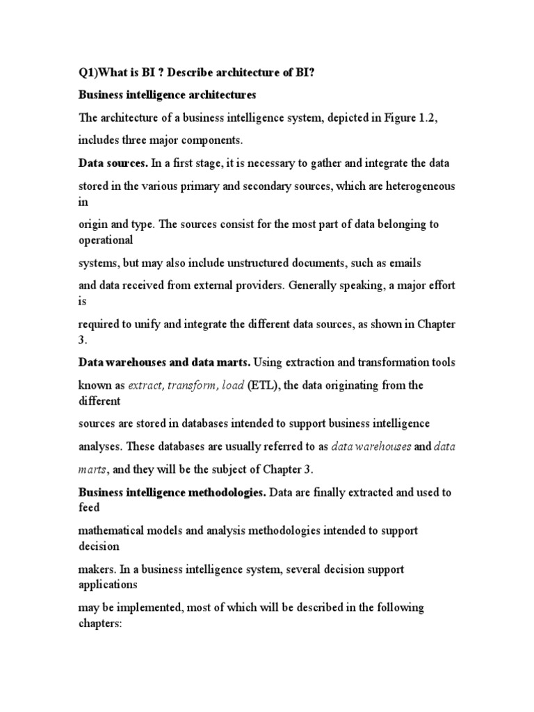 The architecture of a business intelligence system, depicted in Figure 1.2,