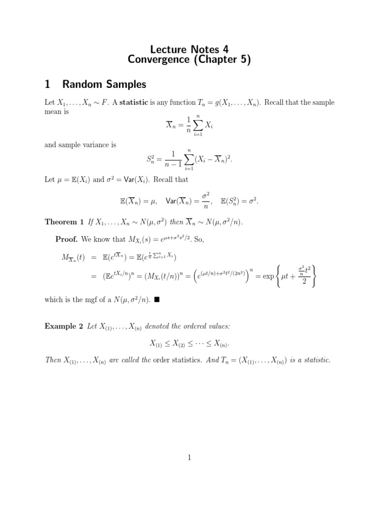 Theorem 1 If X1 , . . . , Xn ∼ N (µ, σ 2 ) then X n ∼ N (µ, σ 2 /n).