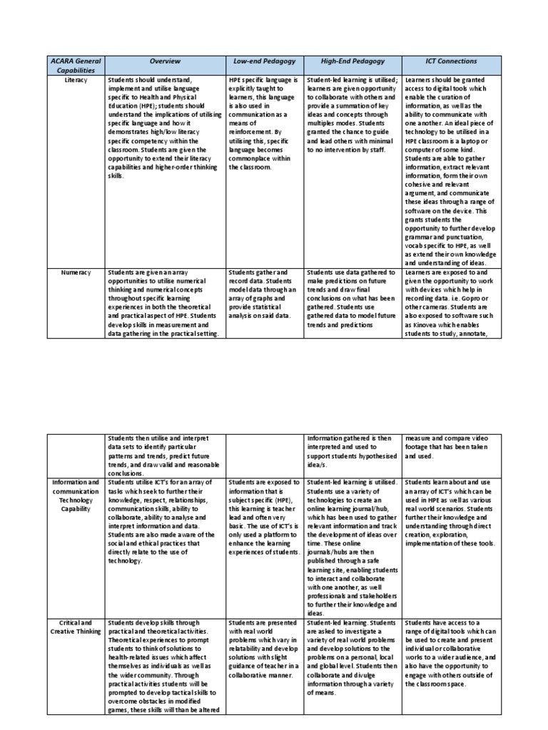 Literacy Students should understand, HPE specific language is Student-led learning is utilised; Learners should be granted