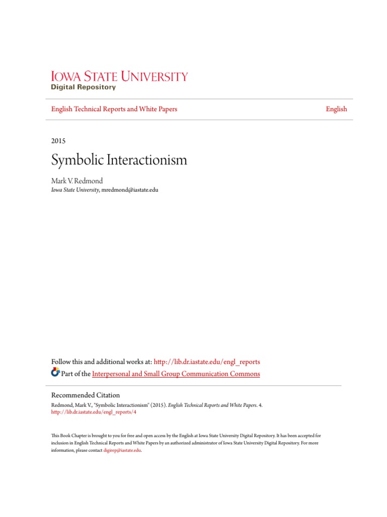 Redmond, Mark V., "Symbolic Interactionism" (2015). English Technical Reports and White Papers. 4.