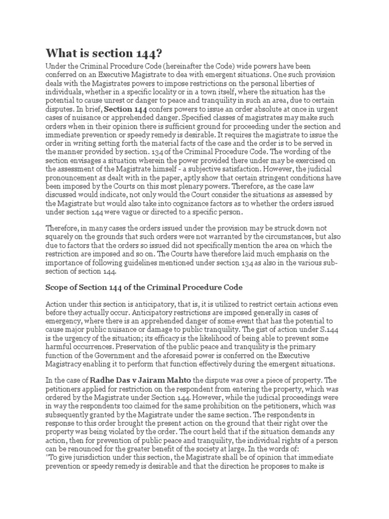 Another point that needs consideration is that an order under section 144 cannot be of a