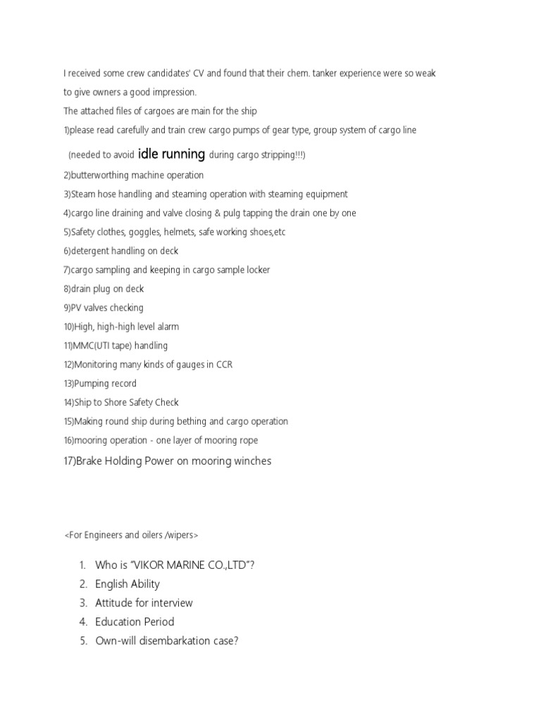 1)please read carefully and train crew cargo pumps of gear type, group system of cargo line