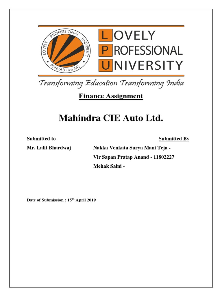 Date of Allotment: 8th/FEB/2019 Date of Submission: 15-April-
