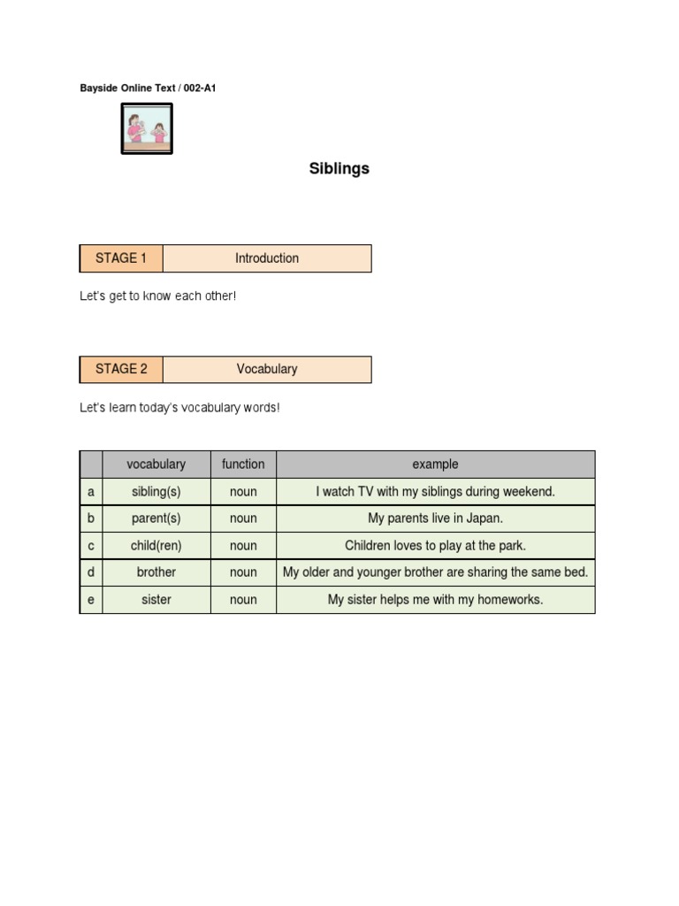 b) Siblings can be a brother or sister. They can also be older or younger than you.