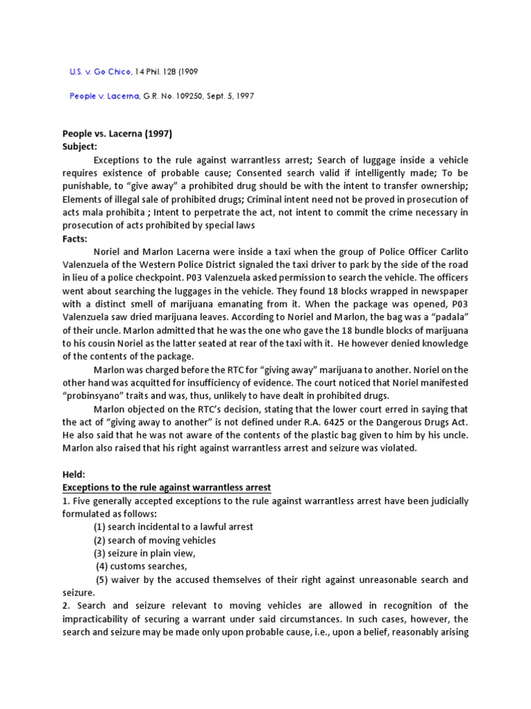 Marlon also raised that his right against warrantless arrest and seizure was violated.