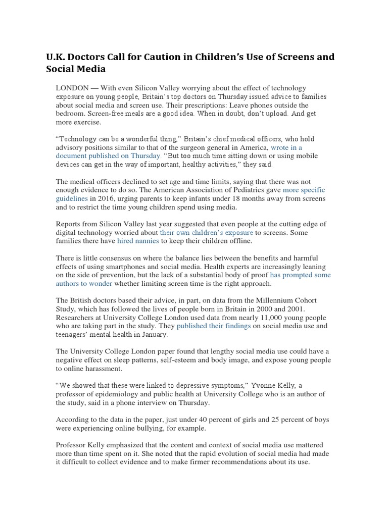 exposure on young people, Britain’s top doctors on Thursday issued advice to families