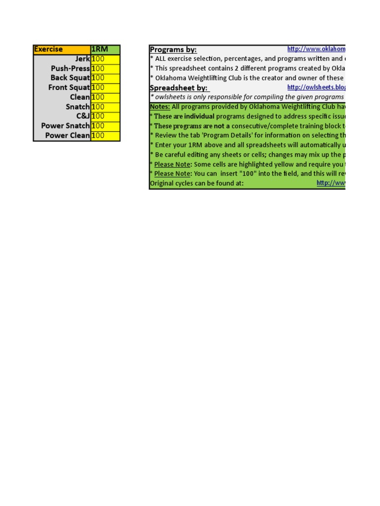Push-Press 100 * This spreadsheet contains 2 different programs created by Oklahoma Weigh