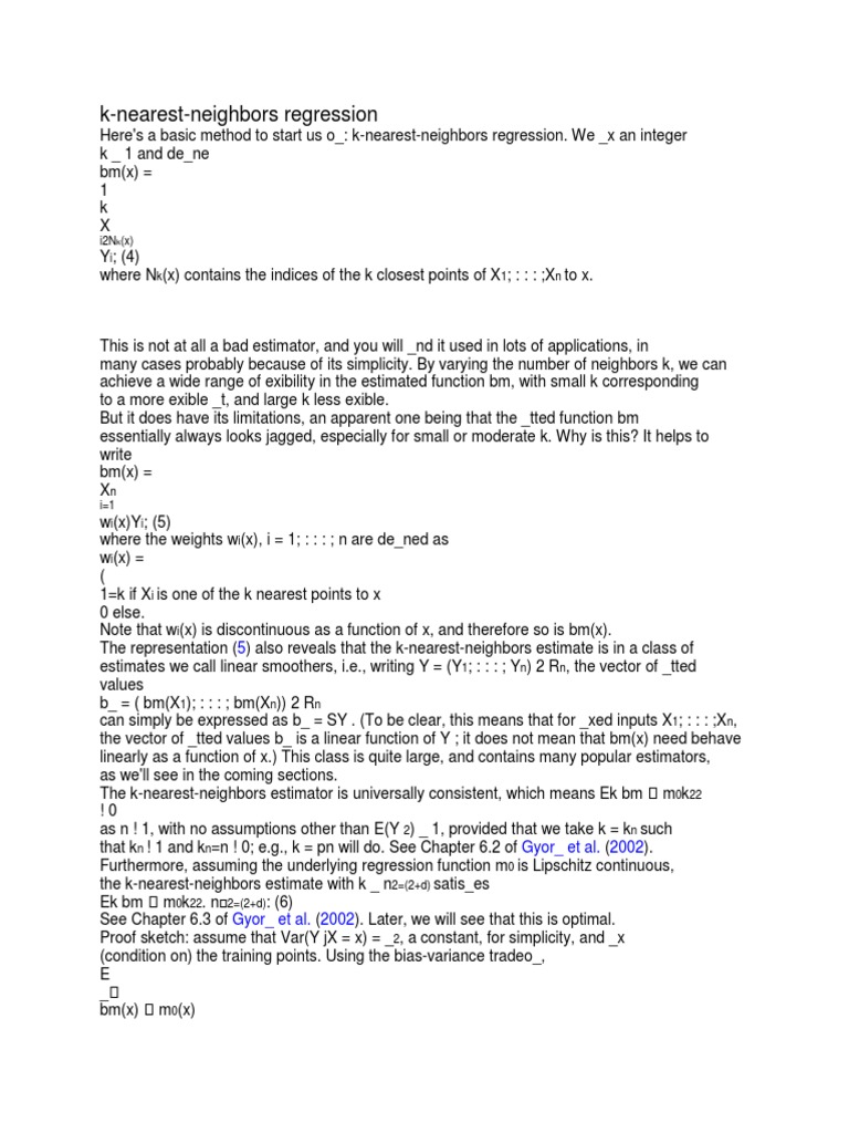 where Nk(x) contains the indices of the k closest points of X1; : : : ;Xn to x.