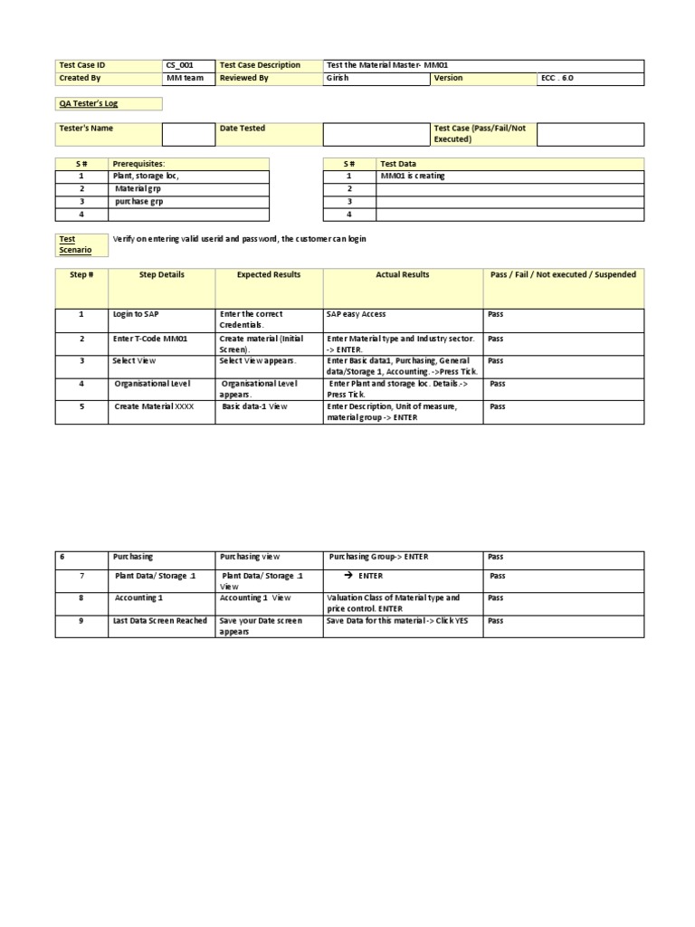 Test Case ID CS_001 Test Case Description Test the Material Master- MM01
