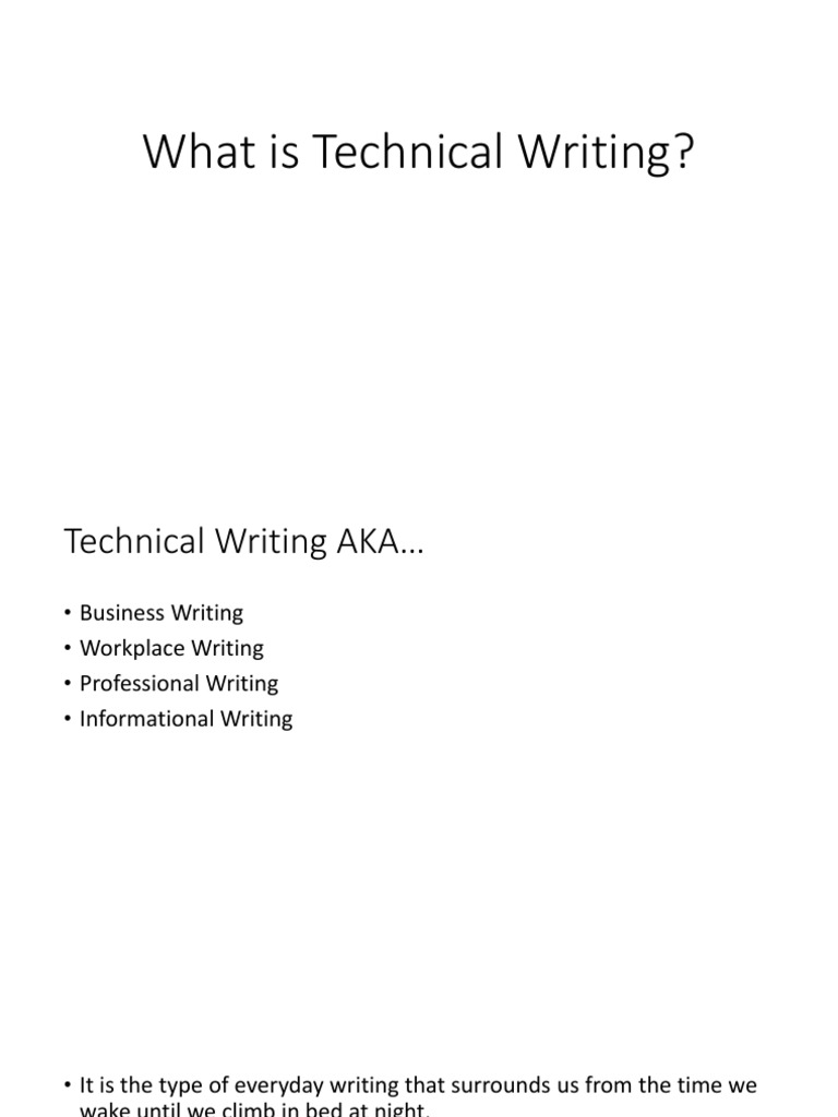 • Technical writing is a natural partner to academic writing. It is descriptive,