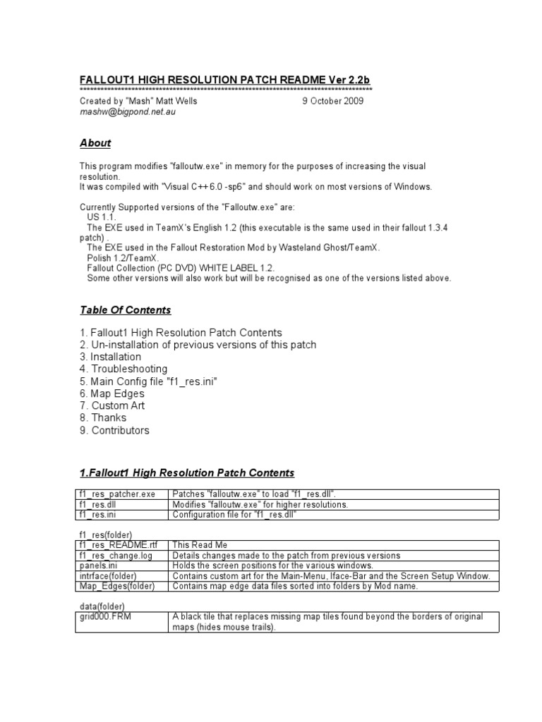 FALLOUT1 HIGH RESOLUTION PATCH README Ver 2.