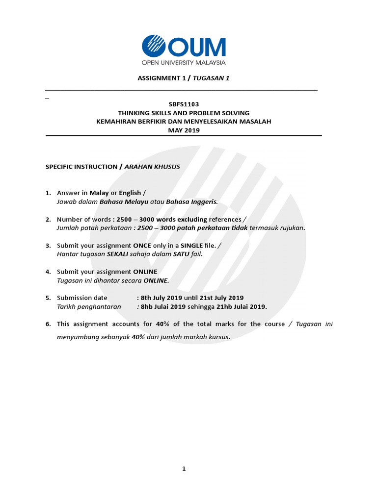 SBFS1103 THINKING SKILLS AND PROBLEM SOLVING / MAY2019