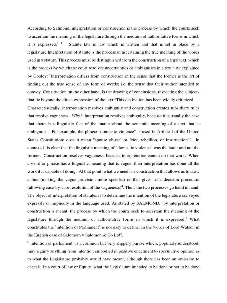 According to Salmond, interpretation or construction is the process by which the courts seek