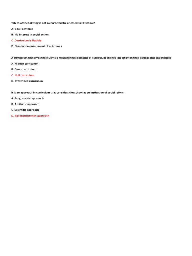 Which of the follwing is not a characteristic of essentialist school?