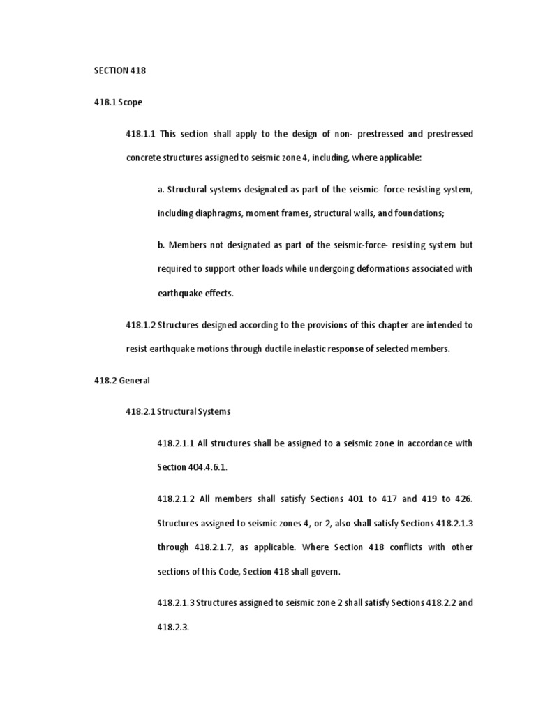 418.2.1.3 Structures assigned to seismic zone 2 shall satisfy Sections 418.2.2 and
