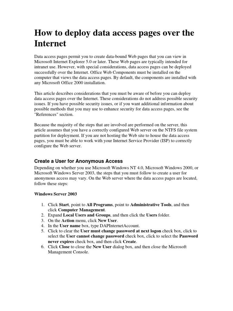 Note If you deploy data access pages in an Access project (.adp), you can omit these