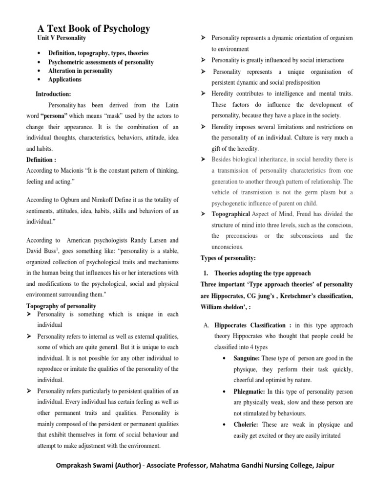 in physique & pessimistic by nature. In this of classification was made by psychologists who came
