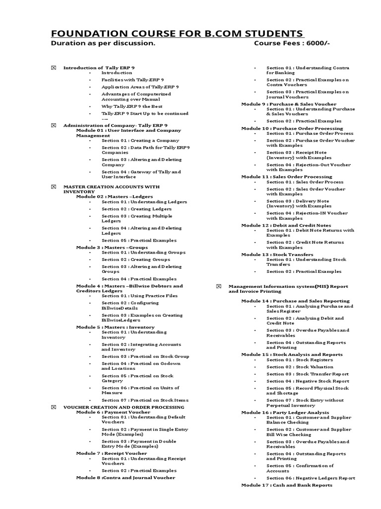 ▪ Section 01 : Creating a Company ▪ Section 02 : Purchase Order Voucher