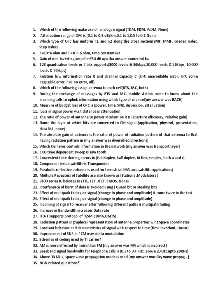 32. AM is more effected by noise than FM (my answer was FM which is incorrect)