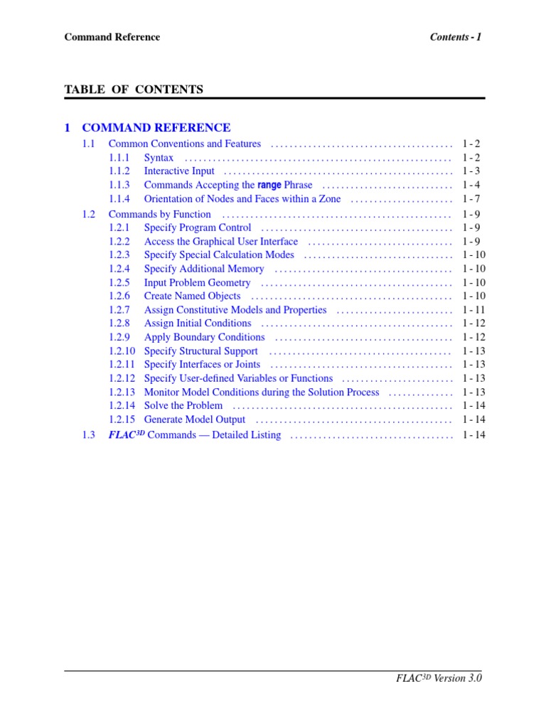 1.3 FLAC 3D Commands — Detailed Listing . . . . . . . . . . . . . . . . . . . . . . . . . . . . . . . . . . . 1 - 14