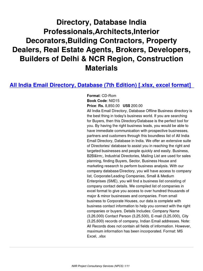 All India Email Directory, Database Offline Business directory is